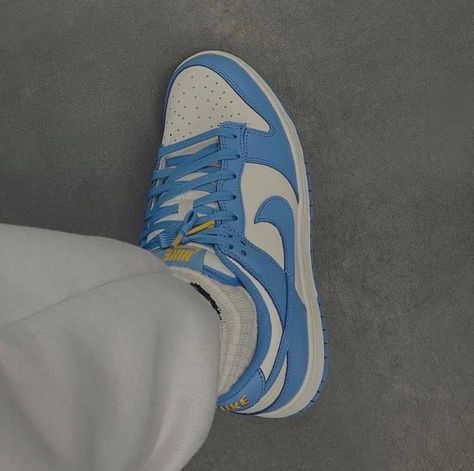 The Nike women’s Dunk Low ‘Coast’ highlights traditional two-tone color blocking on a leather upper that maintains the look of the original 1985 release. A crisp white base, replete with perforated detailing on the toe box, is contrasted by overlays in a vibrant blue finish. Nike branding on the heel tab and woven tongue tag are rendered in an unexpected pop of yellow. The sneaker rides on a low-profile midsole, supported by a rubber outsole featuring concentric circle tread.